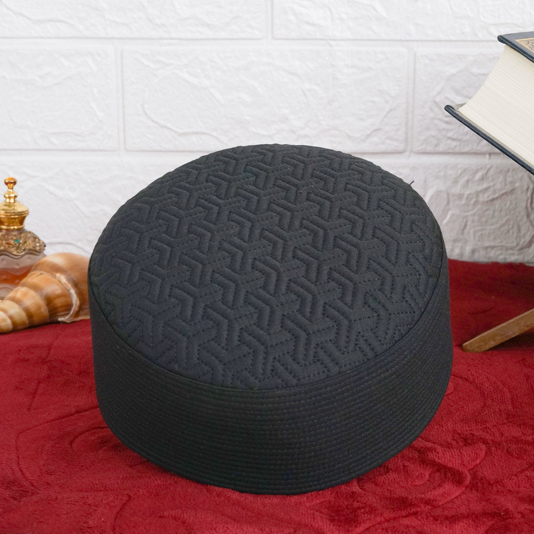 Upgrade your collection with the Jalal Islamic Koofi Cap, featuring a distinctive geometric quilted embroidery design. This intricate pattern highlights precision craftsmanship, offering a unique and elegant texture that enhances its timeless appeal.
